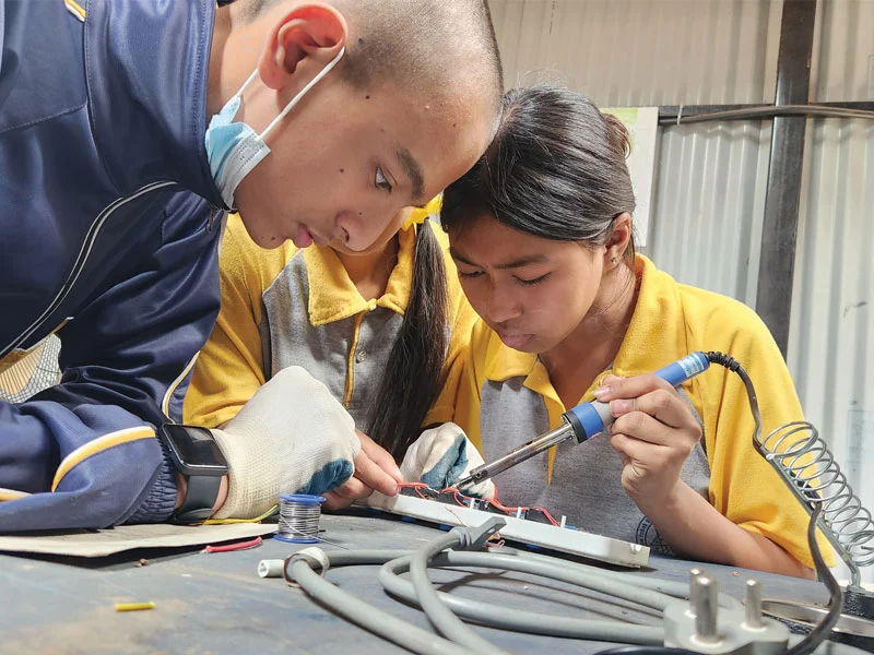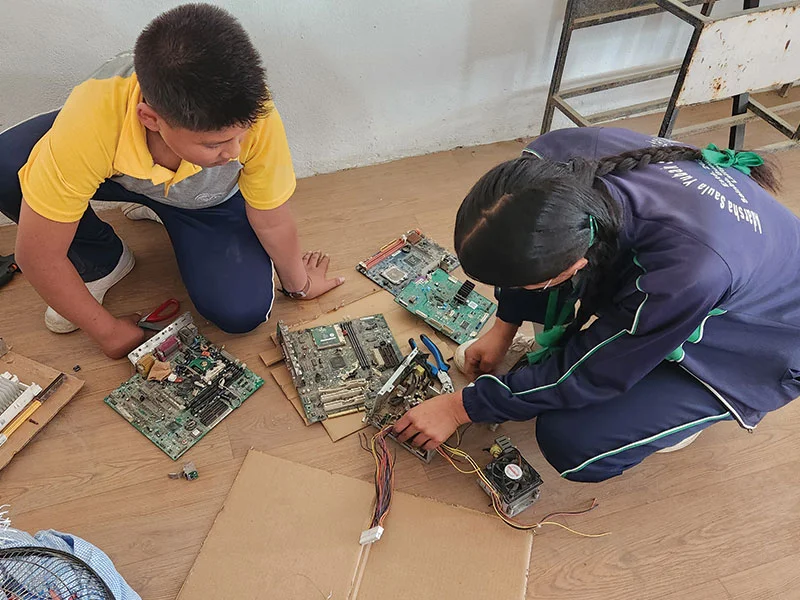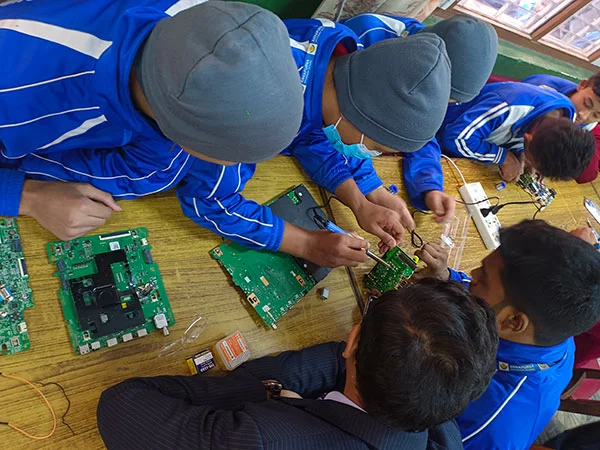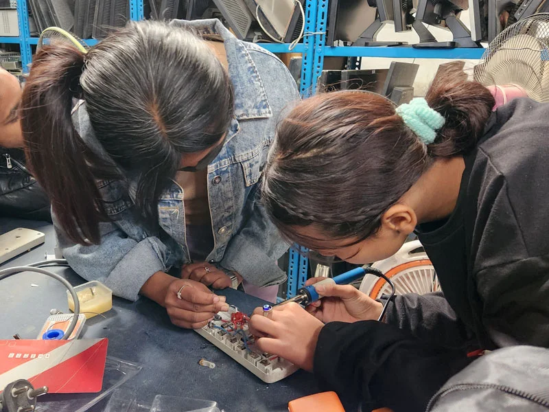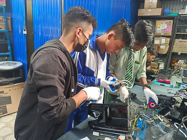Sikaru Saathi combines playful learning with e-waste education to promote curiosity and creativity while learning about the state of e-waste in Nepal and a maker-centered approach to problem solving by repairing electronics. We are a joint collaboration led by Karkhana Samuha in partnership with Doko Recyclers with funding from Lang Social Impact Fellow, Eriko Shrestha of Swarthmore College. We offer online resources like repair videos for you to start tinkering at home and intensive e-waste bootcamps for school students to strengthen STEAM education.